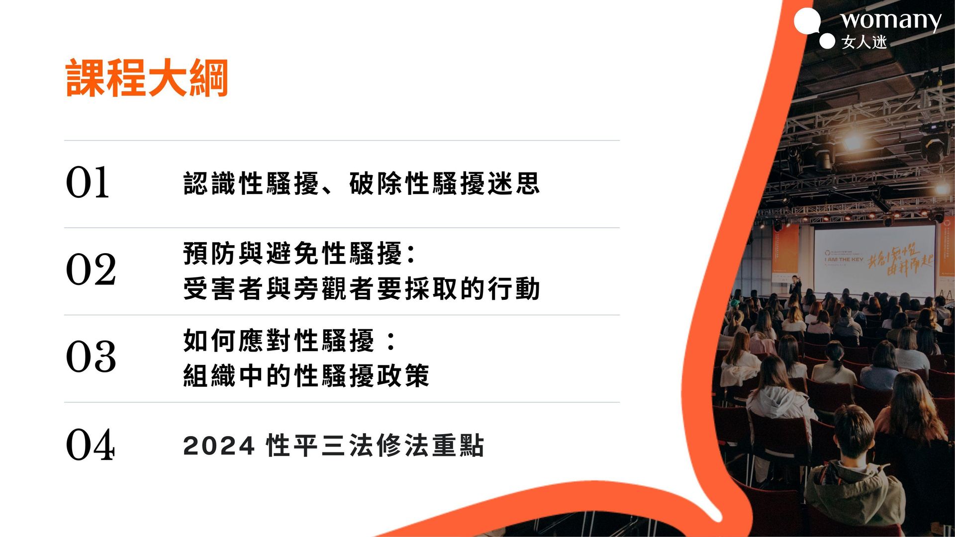 Womany 團隊![[企業專屬] M1 職場性騷擾防治策略與實務](https://s.teachifycdn.com/image/width=3840,quality=80/course/cover_photo/e042d546-56fd-4fff-864c-f0dd589143cc/18e1264f-6886-4044-a79b-627342037873.jpg)