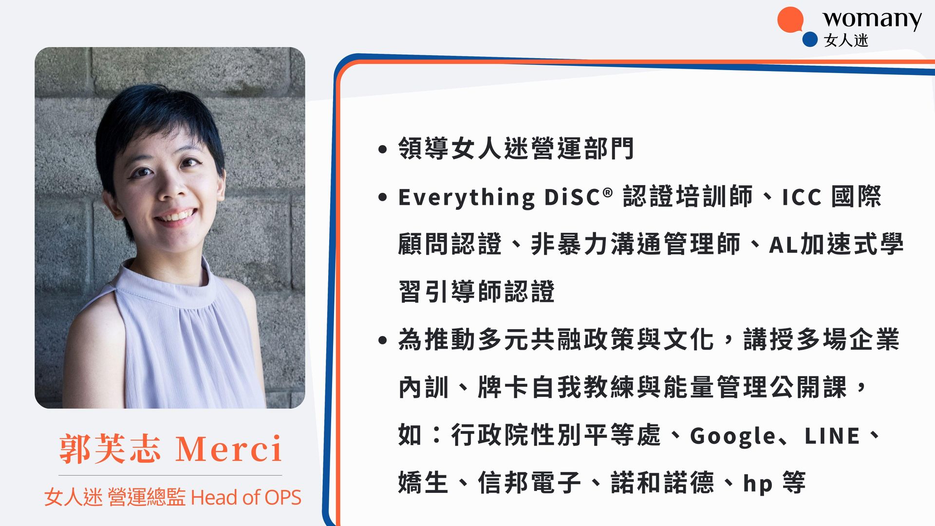 DEI 是全球都是提倡的新職場文化,本堂課是以女人迷獨創的 DEI-I 型模組下所設計的《高效溝通》系列課程。