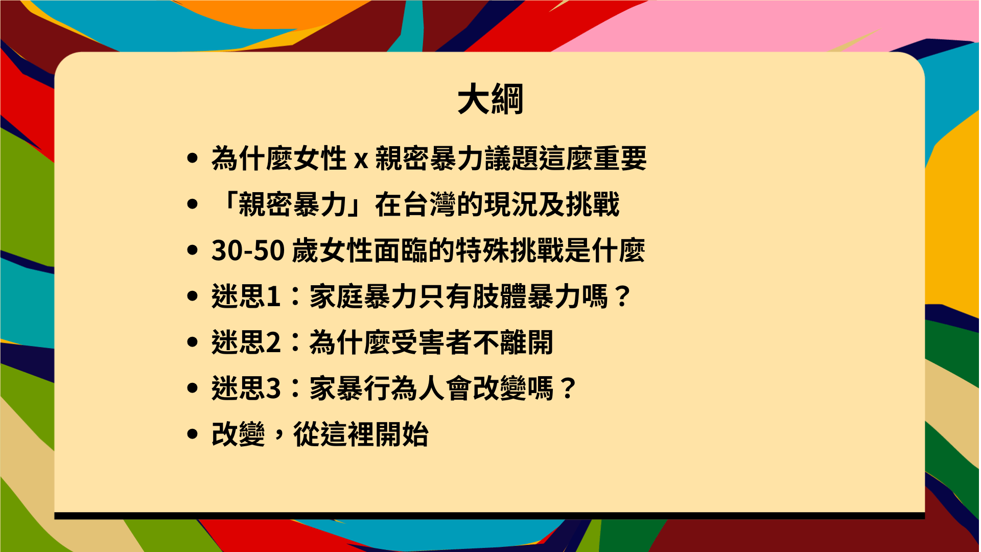 現代婦女基金會挺女力公益開講|親密暴力,不只是肢體傷害